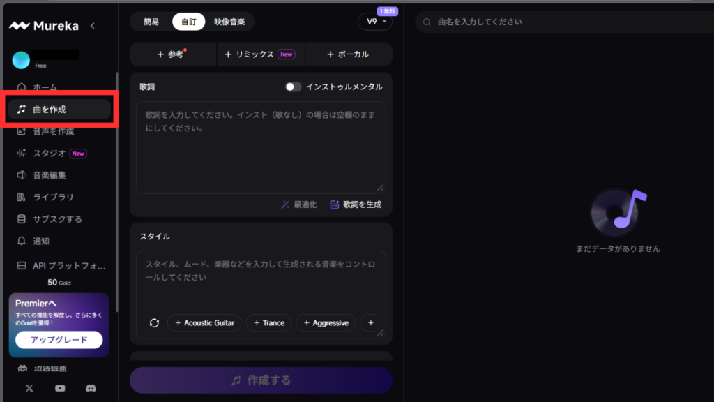 まずは操作感を試したい人や、個人利用・趣味用途だけで楽しみたい人なら、無料プランでも十分です。曲作りの流れや雰囲気を知るだけなら、いきなり課金しなくても面白さは体験できます。